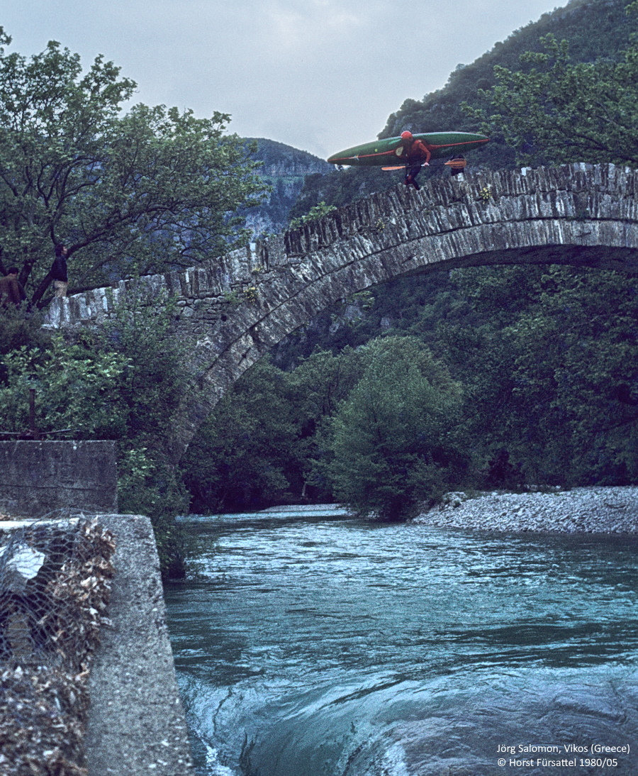 A few paddle strokes further down follows the Missios bridge over the Vikos